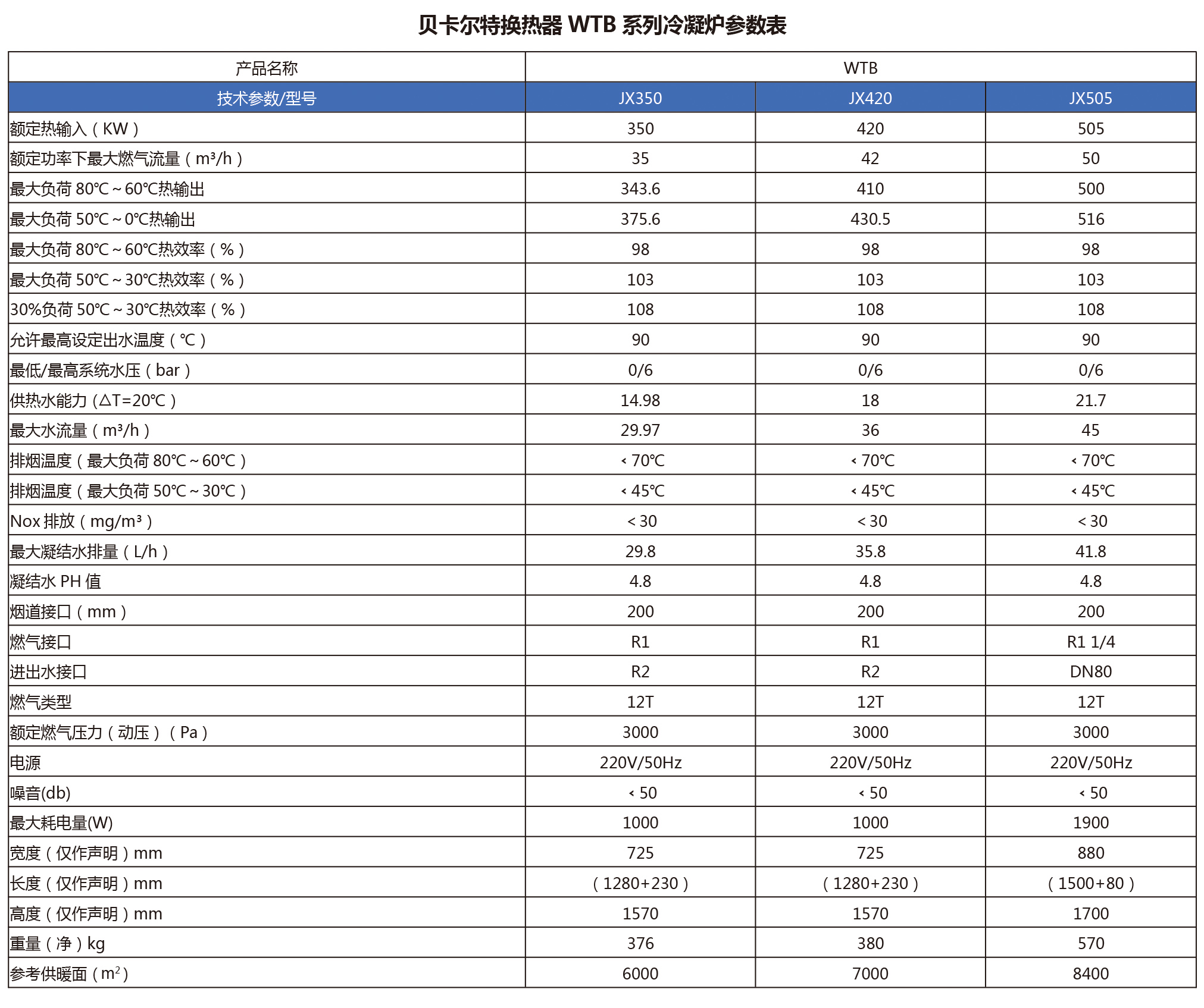 ?采用原裝進口配件,性能優越 ?全預混冷凝技術,空燃比更合理 ?采用貝卡爾特硅鎂鋁合金熱交換器,傳熱 效率高,耐腐蝕性強 ?功率350Kw~505Kw ?供暖面積6000~8400m2 ?熱效率108% ?節能、高效,比一般鍋爐節能約35%以上 ?環保,Nox排放(綜合平均值)在30mg/m3以下 ?微電腦智能控制,操作便捷